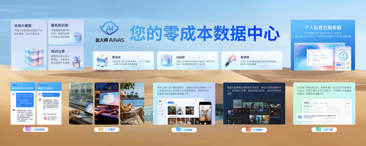 与传统NAS产品相比,鲁大师 AiNAS利用闲置设备即可轻松搭建个人私有云服务器的特性。同时内置7B本地大模型,可以深度理解本地文档,形成整机知识库,并能在此基础上进行知识分享。结合鲁大师多年来向“普通用户更好的提供简易化使用设计”的理念,最终保证了鲁大师 AiNAS的一键式安装使用以及易操作性。